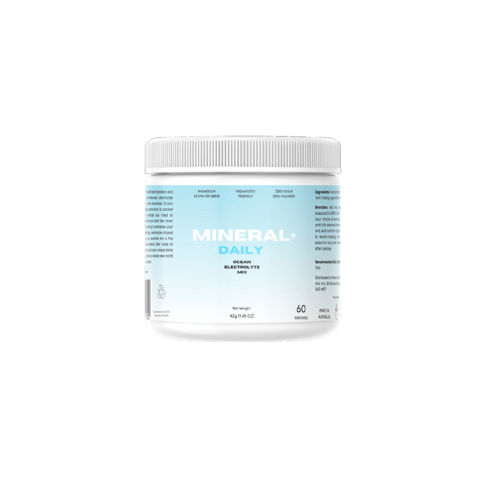 MINERAL+ Experience the ultimate hydration and nourishment with our revolutionary electrolyte mix, crafted from the purest Australian Ocean water. Quench your thirst and fuel your body like never before!